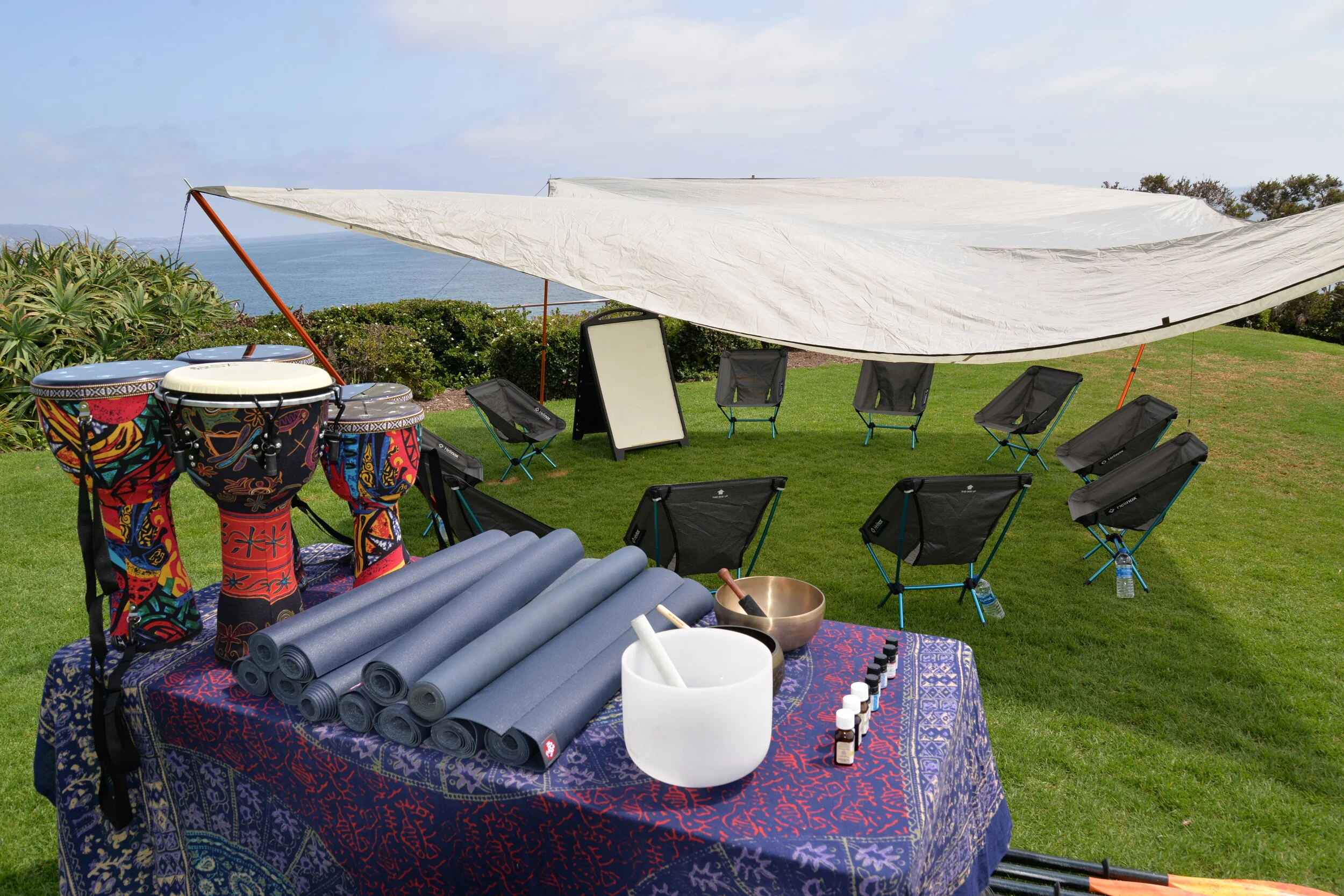 We provide everything: seating, shade, snacks, beverages, meals, and permits if necessary. Plus gear for hiking, biking and kayaking. Also challenges, games, activities, arts, wellness and mindfulness training.